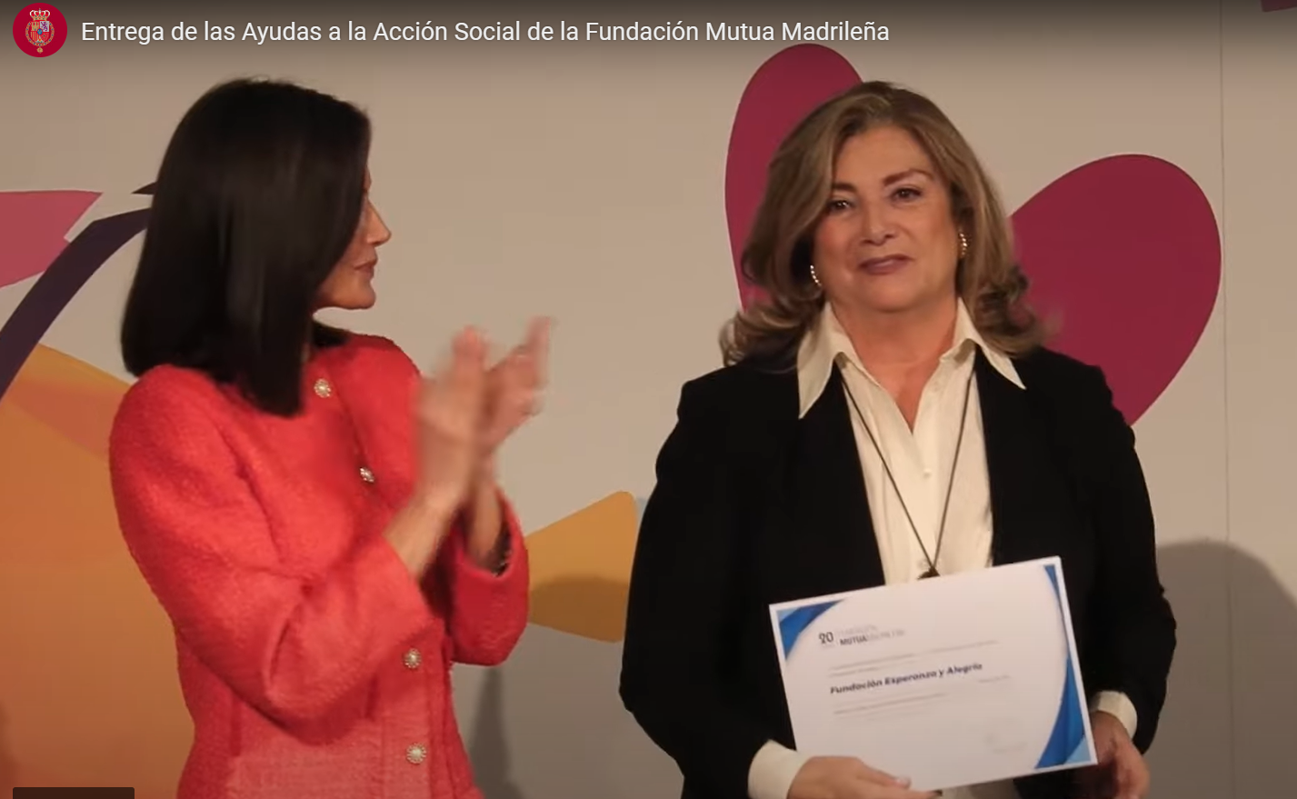 - La Fundación Esperanza y Alegría, tremendos luchadores con Alfonso, Rafa y María a la cabeza, sin olvidar a Gabriel, alma de esta obra. Aquí les hacemos un pequeño homenaje, felicitándoles por haber conseguido recientemente la ayuda de Mutua Madrileña para el Hospital, otra mas de las que ya conseguidas (Ferrovial, Cabildo de Canarias, Fundación Roviralta, …) Abajo os dejamos el video donde lo reciben de manos de la Reina, con la presencia del Ministro y presidente de la Mutua (ver minuto 11)